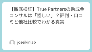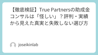 助成金コンサルの選び方を徹底解説。料金体系・実績・サポート体制の3軸で厳選した3社を比較。完全成果報酬+全額返金保証のTrue Partnersなど、リスクゼロで依頼できる会社を紹介。初めての助成金申請でも安心して相談できるパートナーが見つかります。